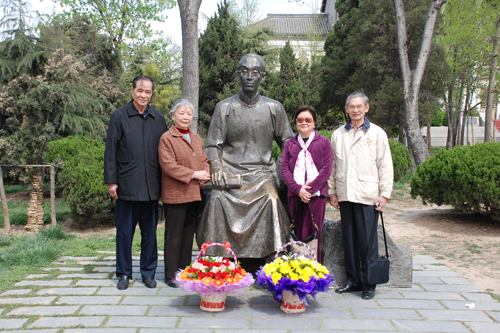 茹黔灵夫妇此次从美国来到开封,是专门祭拜林伯襄先生并慕名参观我校的。在林伯襄先生塑像前,茹黔灵夫妇敬献了花篮,寄托他们对林伯襄先生的缅怀和敬仰之情。随后,他们参观了明伦校区并在大礼堂、南大门前合影留念。
