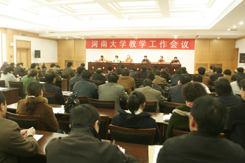 刘济良通报了本学期教学方面的主要工作,包括本科教学评估整改方案的制定,精品课程、教学名师的遴选,教材出版资金资助项目的启动等,对组织申报省级教学成果鉴定等工作进行了安排部署。会议还对上学期教学督导组听课情况、期末考试情况及本学期期初教学工作检查等情况进行了通报,并就征求对《河南大学本科学籍管理条例》的意见、普通话水平测试等工作进行了安排部署。