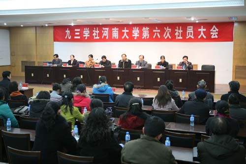 2008年1月7日下午,九三学社河南大学第六次社员大会在新行政楼第四会议室召开。校领导孟庆琦,党委统战部相关负责人出席会议。开封市委统战部常务副部长王文生,开封市政协副主席、九三学社河南省委副主委、九三学社开封市主委高继海等同志到会祝贺。会议由九三学社河南大学委员会副主委李锁平主持。