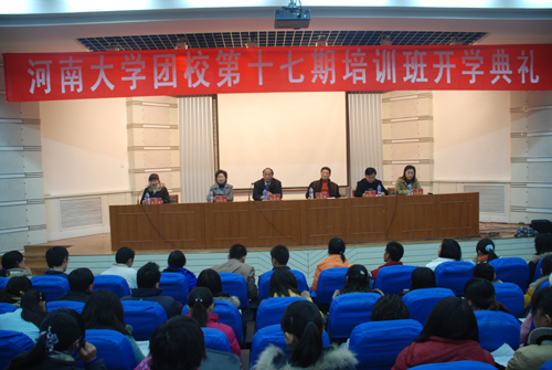 12月11日晚,河南大学团校第十七期培训班开学典礼在科技馆二楼报告厅举行。校领导孟庆琦、原副校长王发曾出席,学生处、校团委的有关负责同志与会。开学典礼由校团委副书记马晓静主持。
