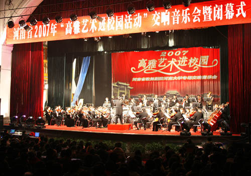据了解,由河南省教育厅主办的这场河南大学专场音乐会,是我省普通高等学校普及高雅艺术进校园活动的最后一场,之前已在郑州大学等15所学校巡回演出。