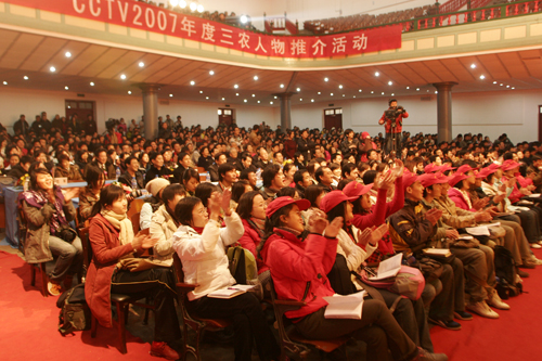 CCTV年度三农人物推介活动是中央电视台农业节目全力打造的品牌活动,现已举办三届。节目以“聚焦三农进程,评点新闻人物”为主题,以“责任、良知、创新性、影响力、推动力”为推介标准,是中国电视媒体上唯一一个针对“三农”领域的典型人物进行的大规模宣传、推介活动。目前,2007CCTV年度三农人物推介活动已经进入初评阶段,最终结果将在2008年1月揭晓。