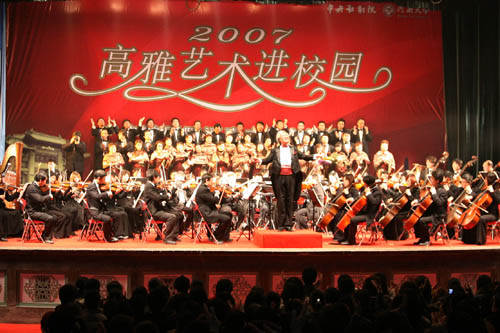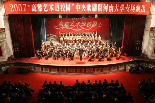悠扬的旋律与观众的激情相互交融,激越的演唱与热情的掌声在古朴典雅的大礼堂久久回荡。由教育部、文化部、财政部主办,中央歌剧院承办的2007“高雅艺术进校园”活动走进我校。12月1日晚,中央歌剧院携世界歌剧经典剧目,在我校大礼堂为在场的千余名师生奉献了一场丰盛高雅的艺术大餐。