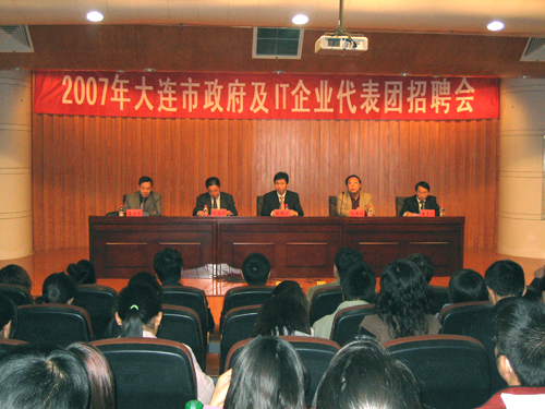 2007年10月30日,大连市政府、大连市信息产业局带领IT企业代表团来我校招聘毕业生。下午3点,招聘会在金明校区行政办公楼二楼会议室隆重开幕。河南大学副校长赵国祥、大连市信息产业局副局长靳国卫、大连市信息产业局副处长汤玉杰、大连市软件外包分会副理事长黄贵洲等出席了会议。会议由河南大学就业指导与服务中心主任崔进军主持。