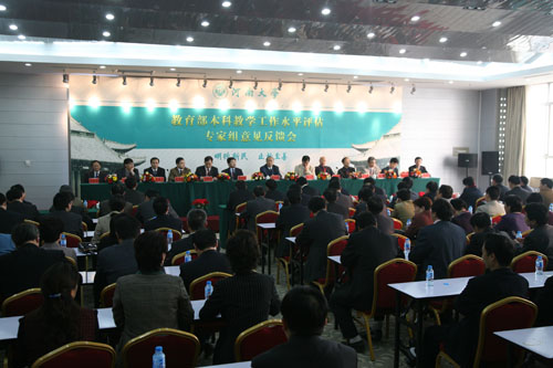 另悉, 26日上午8时至10时,在金明校区学术交流中心第一会议室召开小范围专家意见反馈会。教育部本科教学工作水平评估专家组13位专家主席台就座,我校党委书记张秉义、校长关爱和等学校领导、全校中层正职干部参加会议。会议由评估专家组组长李延保教授主持。