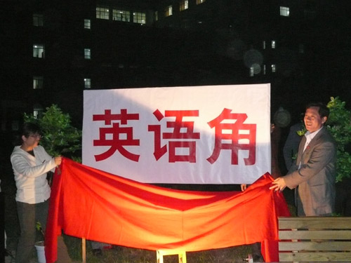 金明校区自2003年投入使用后,英语角先后在综合教学楼的走廊、综合教学楼南侧湖边等场地进行,但是由于场地的局限,不能满足广大同学的要求。