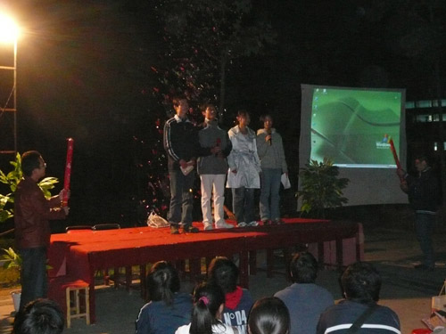 在学校领导的关注和学生处领导的努力下,选定在综合教学楼前马可广场西南角设立英语角。这里环境幽雅,交通方便,是晨读和晚上口语交流的适宜场合。负责英语角组织的同学们为本次活动付出了很大的努力,在场地布置、活动安排等方面做了很多工作。
