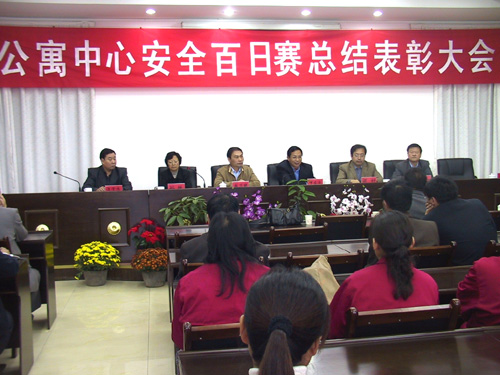 总公司副总经理汪汉远作了活动总结报告。他简要回顾了活动的开展情况,全面总结了活动所取得的成绩,认真分析了公寓安全工作面临的新情况和新问题,并就如何做好公寓管理与服务工作作了全面部署。总公司管理者代表、副总经理何五一宣读了《关于表彰公寓安全百日竞赛活动先进集体和先进个人的决定》,南苑等六个学生公寓园区被命名为安全工作示范园区,商成莲等13名先进个人受到表彰。