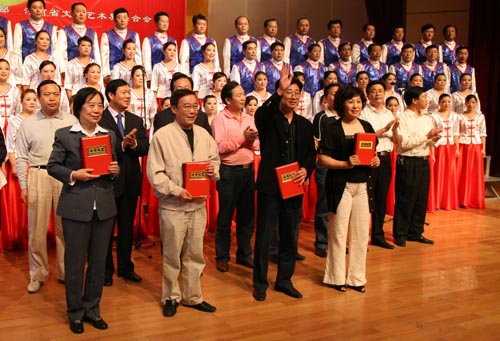 歌声嘹亮,激情飞扬。9月27日晚,由省委宣传部、省文联主办,省音乐家协会、河南电视台承办的河南省迎接党的十七大“欢乐中原”合唱颁奖展演音乐会在黄河科技学院举行,我校学生合唱团获得了本次合唱比赛特别奖。校领导孟庆琦、党委宣传部部长李文山等观看了演出。