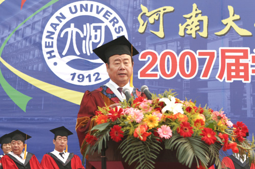 升国旗仪式结束后,校党委副书记黄亚彬教授宣读了《河南省教育厅关于表彰2007年河南省应届优秀大中专毕业生的决定》和《河南大学2007届优秀毕业生表彰决定》。2208名省、校两级优秀毕业生获得了表彰。副校长曹奎教授宣读河南大学2007届本科毕业生学士学位授予决定。之后,校长关爱和为获得表彰的省级优秀毕业生授予学位,并和大家握手,为同学们正冠拨苏。