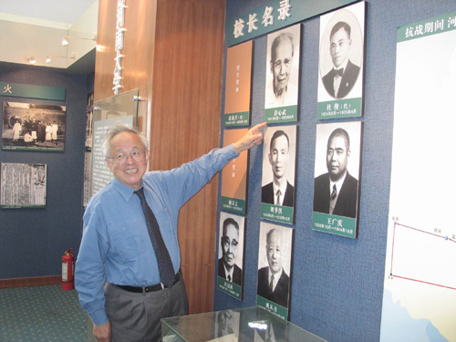 在会客室,我校校长关爱和亲切会见了许靖华先生,并对许先生的归来表示热烈欢迎。关爱和同志代表学校向许靖华赠送了《河南大学校史》和《与世纪同行》画册,许先生愉快地接受了礼物并向学校回赠了自己的传记《孤独与追寻——我的青年时代》。
