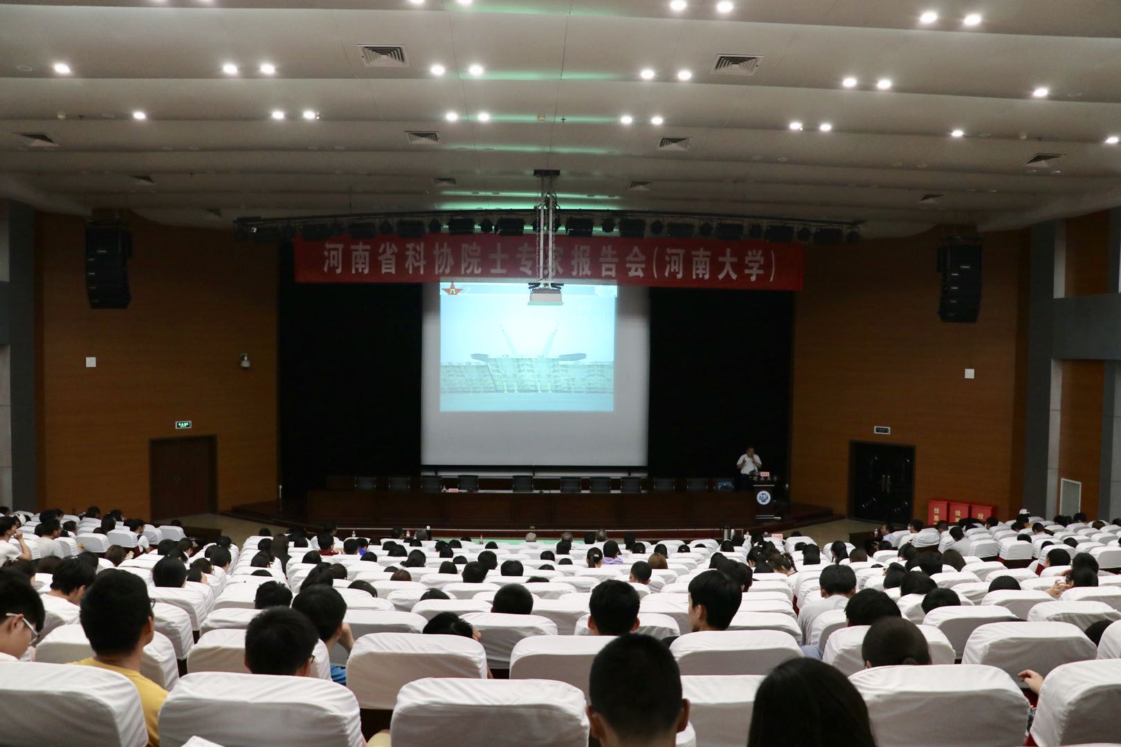5月23日下午,由河南大学离退休工作处、共青团河南大学委员会、老科技工作者协会承办的中国老科协报告团、河南省科协科技大讲堂、老科协院士专家报告会在金明校区图书馆一楼报告厅举行,河南省老科技工作者协会副会长兼秘书长吴丽莉出席报告会,校离退休教职工代表和学生400余人到场聆听。报告会由河南大学原副校长、老科技工作者协会会长王发曾主持。