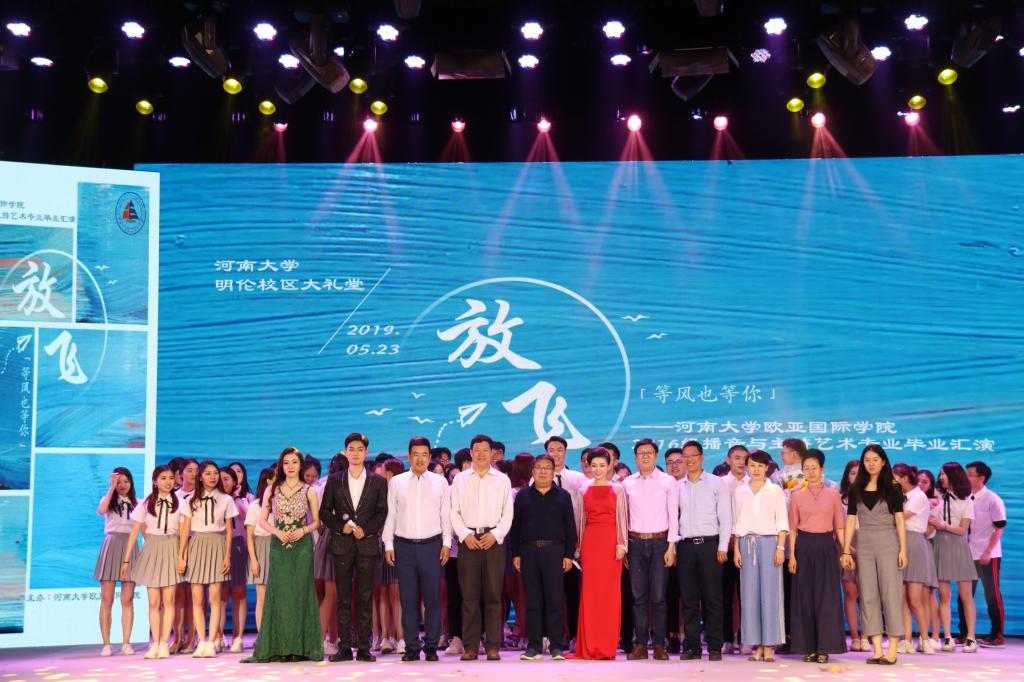 5月23日晚,欧亚国际学院2016级播音与主持艺术专业汇报演出“放飞”在大礼堂举行。校学生工作部、就业创业指导中心、新闻与传播学院有关负责人以及欧亚国际学院师生出席晚会。