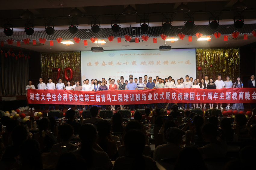 追梦奋进七十载,砥砺共铸双一流。5月26日晚,生命科学学院在圆形报告厅三楼举办青马工程培训班结业仪式暨“庆祝建国七十周年”主题教育晚会。校党委宣传部、党委学生工作部、学生处及生命科学学院有关负责人,学院外籍教师、法国南巴黎大学Michael DuBow 教授夫妇及其他教师代表,近四百名本科生、研究生观看了晚会。