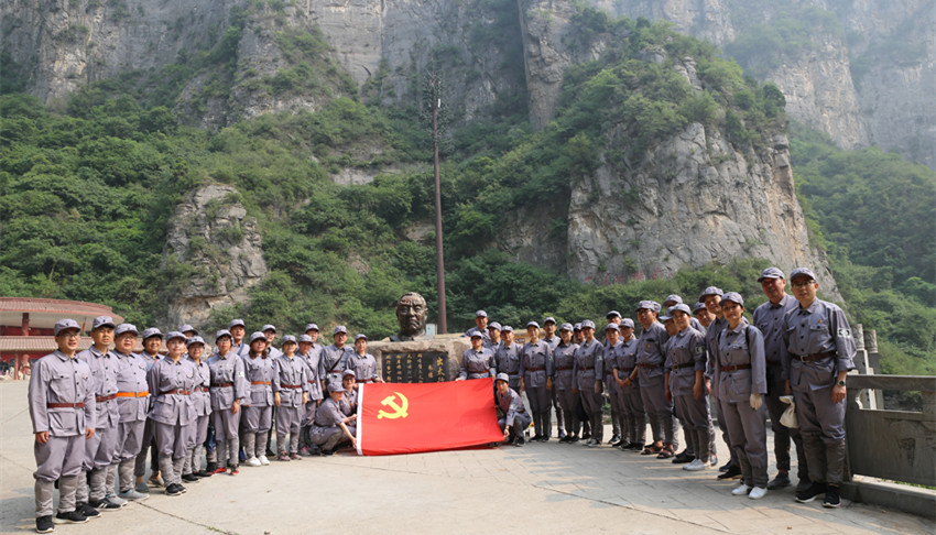 在五龙口实践教育基地,学员们身着八路军服装,重走朱德出太行小道,重温入党誓词,实地学习了革命前辈的艰苦奋斗精神,远大理想与坚定信念在大家的心中油然而生。