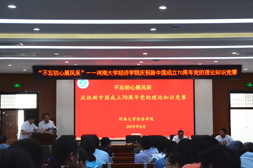 为进一步深入学习贯彻习近平新时代中国特色社会主义思想和党的十九大精神,推进“两学一做”学习教育常态化制度化,迎接“不忘初心,牢记使命”主题教育,5月30日下午,经济学院举办了以“不忘初心展风采”为主题的党的政治理论知识竞赛。全院400余名师生党员参加了竞赛。