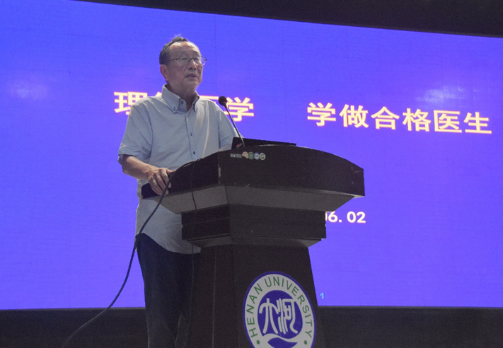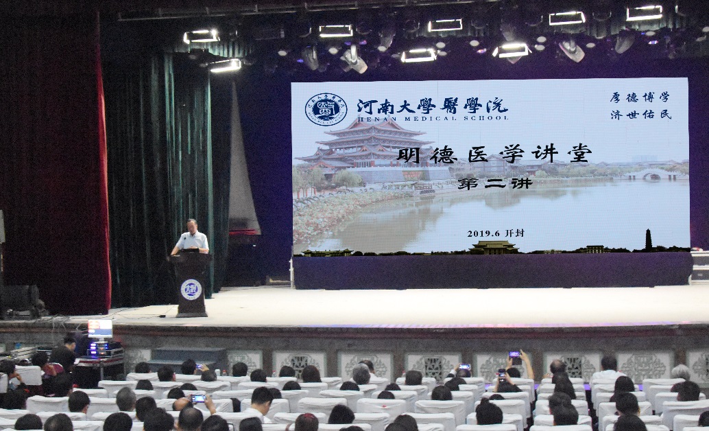 桃李不言,下自成蹊;不为良相,便为良医。6月2日,医学院“明德医学讲堂”第二讲在历史文化气息厚重的河南大学明伦校区大礼堂正式开讲,我国心血管医学领域著名专家、国际欧亚科学院院士胡大一作为主讲嘉宾,为现场师生讲授了题为“理解医学 做合格医生”的别样课程。讲堂由校党委常委、副校长、医学院党工委书记孙君健主持。