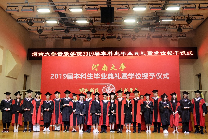 在河南大学校歌的优美旋律中,音乐学院2019届本科生毕业典礼暨学位授予仪式圆满结束。