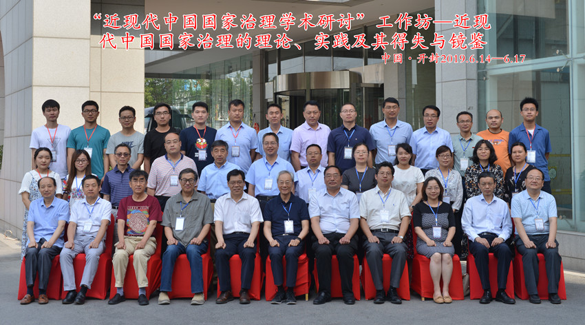 2019年6月14—17日,由中国社会科学院近代史研究所与河南大学联合主办,我校历史文化学院、中国社会科学院近代史研究所革命史研究室、“河南大学近现代中国国家治理”研究创新团队承办的“近现代中国国家治理学术研讨”工作坊成立仪式在古城开封新东苑大酒店举行。会议旨在系统总结与探讨近现代中国国家治理之得失。河南大学党委常委、副校长孙君健,中国社会科学院近代史研究所党委副书记、副所长金民卿研究员,原中共中央党史研究室副主任章百家研究员,中共中央党校党史教研部王海光教授,中国社会科学院近代史研究所革命史研究室主任黄道炫研究员,安徽省社会科学院历史研究所副所长、《安徽史学》编辑部主任汪谦干研究员,广东省社会科学院历史与孙中山研究所副所长、《广东社会科学》李振武研究员,《中国社会科学》杂志社编辑武雪彬女士,郑州大学历史学院副院长谢晓鹏教授,美国明尼苏达大学德鲁斯校区历史系方强教授,以及本次工作坊召集人、河南大学省特聘教授翁有为等,共计40余位专家学者莅临参会。开幕式由我校文化学院副院长祁琛云主持。