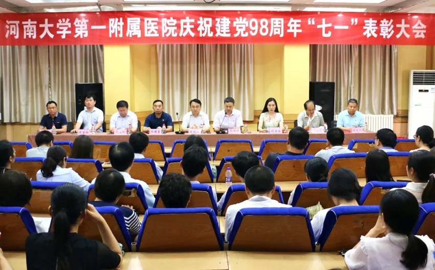 院党委副书记陈丹丹同志宣读了《中共河南大学第一附属医院委员会关于表彰先进党支部、优秀共产党员、优秀党务工作者的决定》,外科第一党支部、内科第二党支部、机关第二党支部获得先进党支部;刘振荣、赵青华、徐丽、翟素华获得优秀党务工作者,丁洁等42名教职工生荣获优秀共产党员光荣称号。