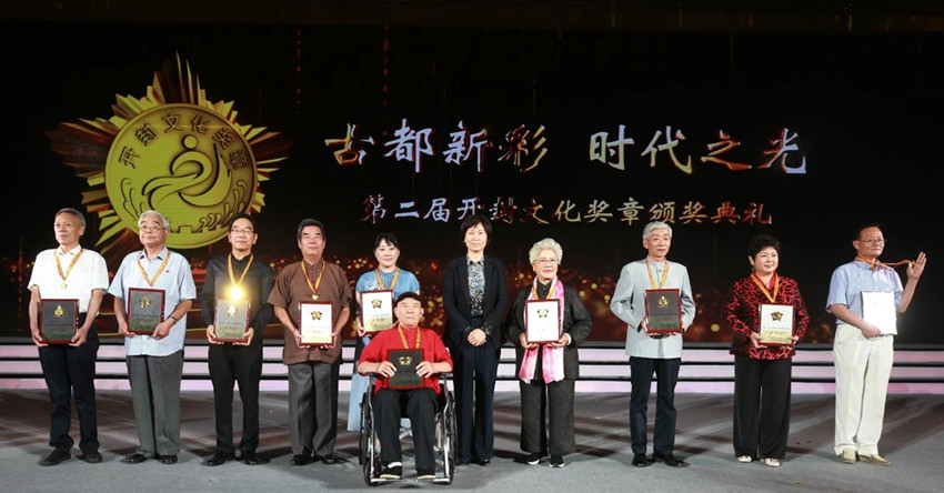 群英竞起,百舸争流,6月29日晚,由开封市市委、市政府主办的“古都新彩,时代之光——第二届开封文化奖章颁奖典礼”在开封博物馆举行。省人大常委会党组书记、副主任赵素萍,省委宣传部副部长、省文明办主任张曼如,省文联党组成员、副主席杨艳玲,开封市市委书记侯红,我校党委常委、工会主席沈洁霞等领导出席颁奖典礼。