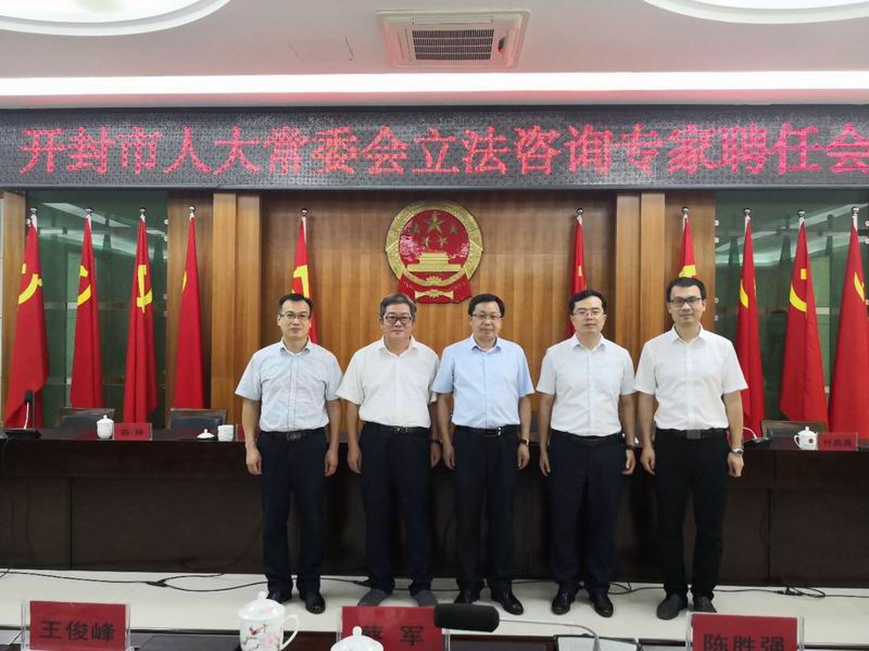 7月5日下午,开封市人大常委会在市人大办公楼一楼多功能会议厅召开立法咨询专家聘任会。市人大常委会副主任徐强向来自法学和法律实务、城乡建设与管理、环境保护、历史文化保护等不同领域的44位立法咨询专家颁发了聘书。在我校法学院推荐基础上,经市人大常委会公开遴选和市人大常委会主任会议审议,法学院院长蔡军教授、王俊峰副教授、陈胜强副教授、王利副教授、岳红强副教授、刘夏副教授等六位教师被聘为开封市第十五届人大常委会立法咨询专家。