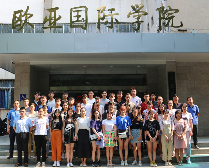 会后,同学们和老师们在欧亚国际学院门前合影留念。