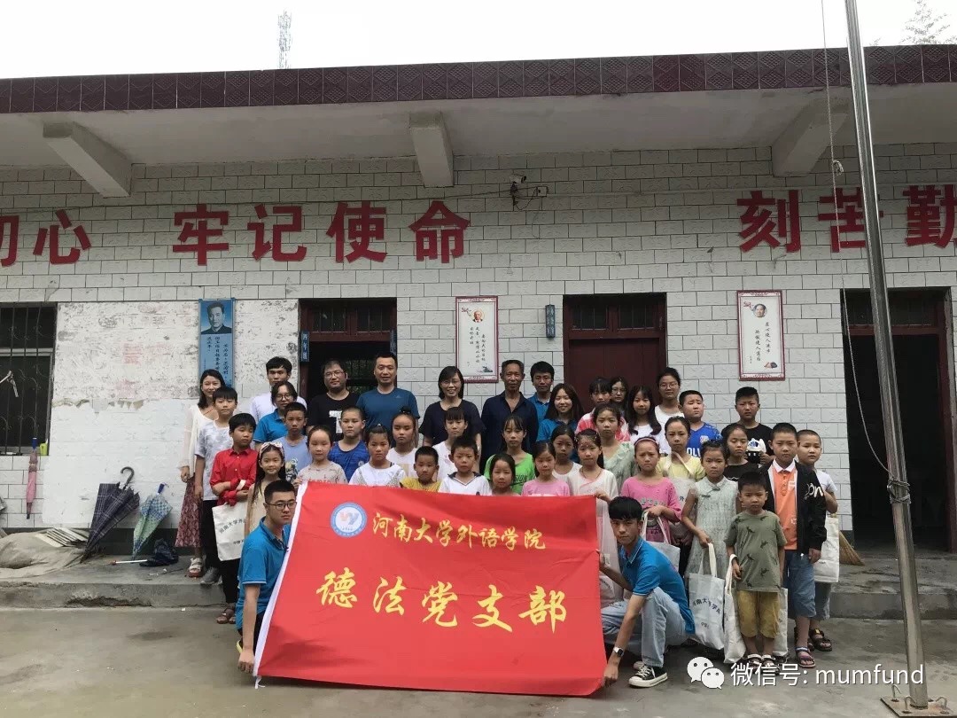 7月12日下午,外语学院德法党支部在南召山区大沟村小学开展特色党日活动与党课学习。外语学院党委副书记、德法党支部成员马晓静代表党支部向南召山区46名贫困生发放3000余元慰问金与慰问物资,并组织师生党员一起聆听坚守大山38年的党员教师杜广云的优秀事迹报告会。