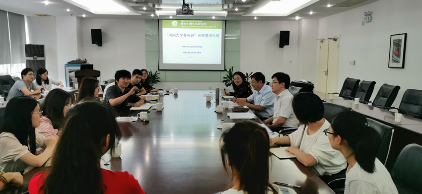 7月19日上午,河南大学--中国科学院上海生命科学研究院“菁英计划”开展情况座谈会在中科院上海生命科学院分子植物科学卓越创新中心/植物生理生态研究所1号楼113会议室举行。生命科学学院党委书记赵东保,中国科学院上海分子植物科学卓越创新中心/植物生理生态研究所所长助理王佳伟研究员和“菁英计划”联合培养导师姜卫红研究员、肖友利研究员、李轩研究员、张余研究员、相关课题组老师代表、“菁英计划”上海管理办公室李秋萍等出席座谈会。座谈会由王佳伟研究员主持。