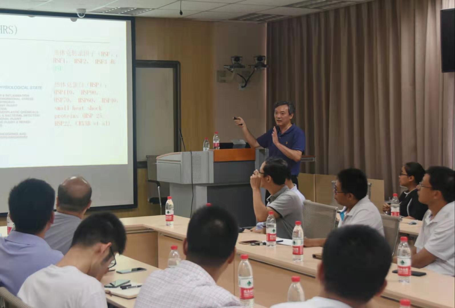 胡延忠博士介绍了河南大学抗体药物开发技术国家地方联合工程实验室的情况,然后从抗体基因修饰、噬菌体抗体文库以及突变链球菌单链抗体到热休克蛋白靶向药物研发等中药单体研发,从热休克蛋白的基因调控到家族遗传病基因分析,介绍了热休克蛋白HSP的发现历史、国内外HSP的研究现状,概述了HSP在应力反应中的机体调控作用,重点回顾了热休克转录因子HSF1-4以及热休克蛋白HSP60、HSP70、HSP90和HSP110等保护反应机制。目前课题组在HSF4与肿瘤、HSF4与晶状体、HSF4与神经退行性疾病、HSF4与衰老等方面的研究有新发现,在HSF4基因敲除模型中,HSF4缺失直接导致小鼠和斑马鱼白内障的发生,转录后磷酸化修饰且调节HSP25和CryABde表达。HSF4/S299A也上调HSF4的转录活性,调控溶酶体的PH控制晶状体的发育,在衰老信号通路和抗紫外线方面也有明显的功能。胡延忠最后表示,关于HSF4有很多未知领域值得进一步探索,期待与大家有更深入的探讨、合作,共同提高对HSF和HSP家族的认知。