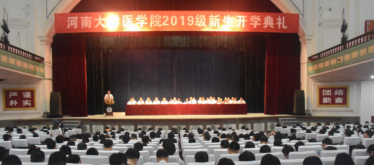 开学典礼在雄壮的国歌声中拉开帷幕。医学院院长、临床医学院院长、人民医院党委书记顾建钦代表学院全体师生员工,向来自祖国各地的1200余名新同学,表示热烈的欢迎和衷心的祝贺。向辛勤培育学生的父母、师长、亲朋,致以最诚挚的问候和最崇高的敬意。顾建钦简要介绍了河南大学医学教育的发展历史和医学院的现状,他寄语同学们要独立精神,成为自我,要自主学习,成就未来,要追求健康,成长身心。希望同学们乐学、会学、博学,自信自立自强,不随波逐流,不挥霍虚度,求得真学问、练就真本领,做一名顶天立地的“大爱医者”。