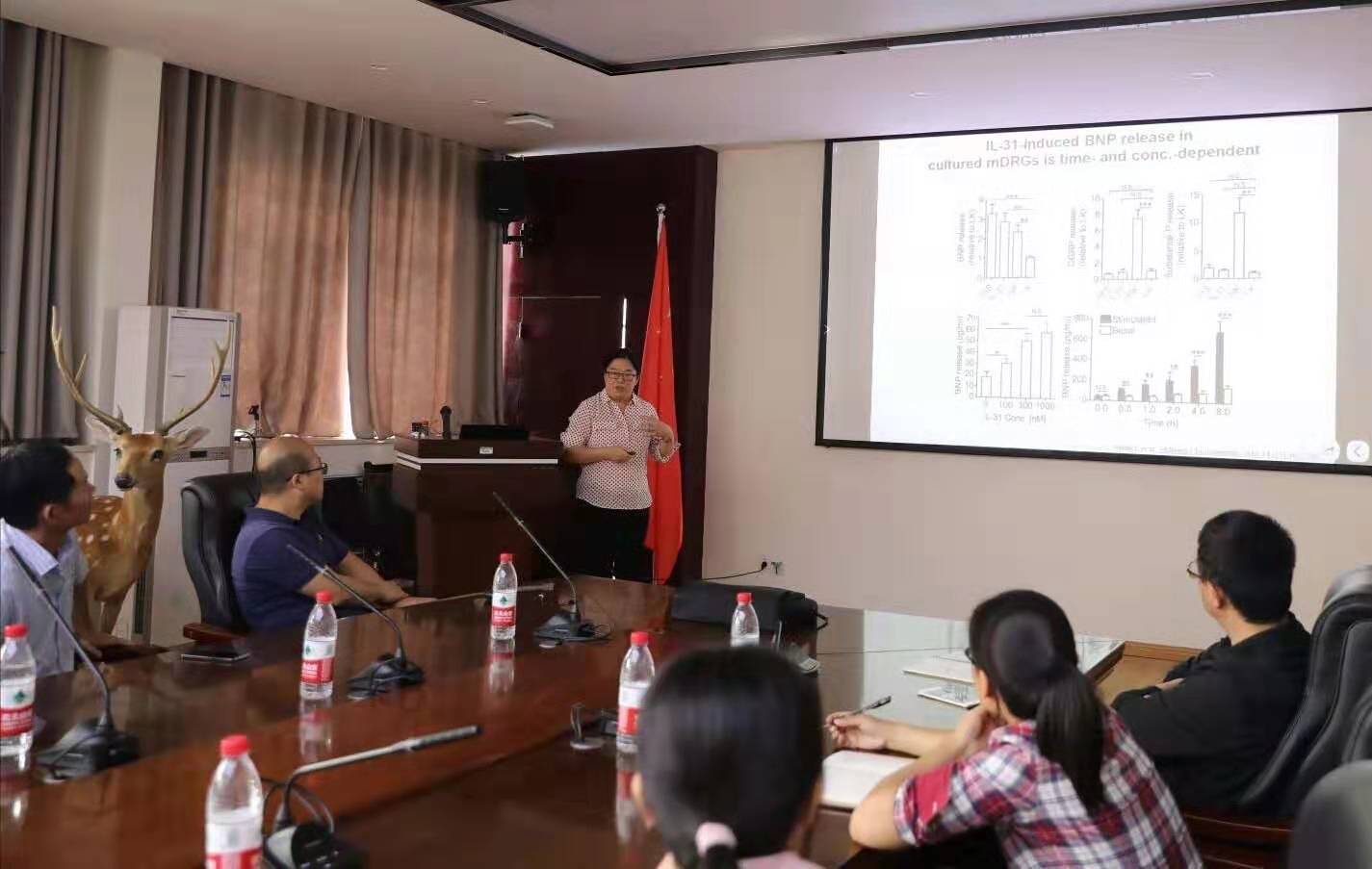 围绕孟疆辉关于瘙痒问题的基础研究,第一附属医院神经病学陈文武教授从临床工作中的角度,提出在诊疗过程中遇到过多例心衰病人出现瘙痒症状的案例,表示愿意联合开展相关研究。生命科学院的王彦明博士、魏建设博士,淮河医院的王军朋博士,护理学院的蒋恩社博士,基础医学院的王泽坤博士,河南大学第一附属医院的段永健博士,天然药物与免疫工程重点实验室的岑娟博士等,在报告过程中和结束后就慢性瘙痒的治疗方式、靶标选择、研究材料等方面与孟博士进行了充分的讨论和交流,会场学术气氛活跃。