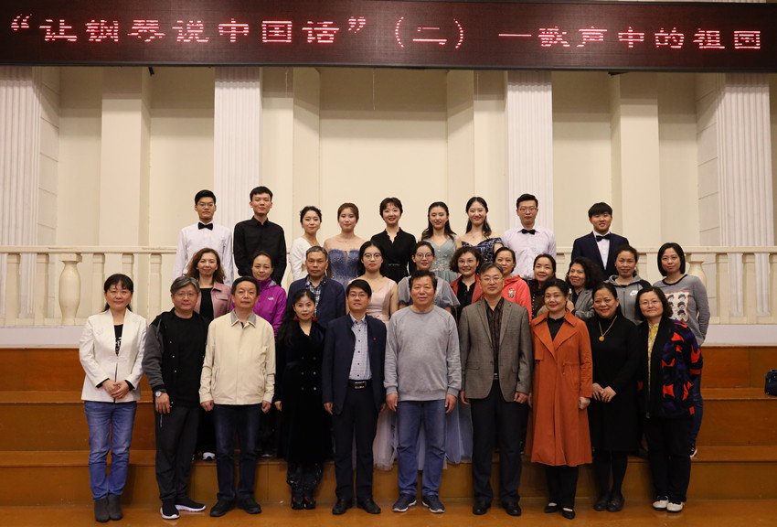 10月9日晚,河南大学音乐学院庆祝中华人民共和国成立70周年系列活动——让钢琴说中国话(二)之《歌声中的祖国》暨牛冬阳教授教学汇报音乐会(中国作品)在音乐学院音乐厅举行。本场音乐会由音乐学院钢琴系主办,旨在用音乐开展爱国主义教育,弘扬民族文化。音乐会所选曲目以五四运动、国内革命战争、抗日战争、解放战争、抗美援朝至今涌现出的众多爱国主义的声乐作品改编曲为主线。音乐学院相关领导以及钢琴系师生代表观看了演出。