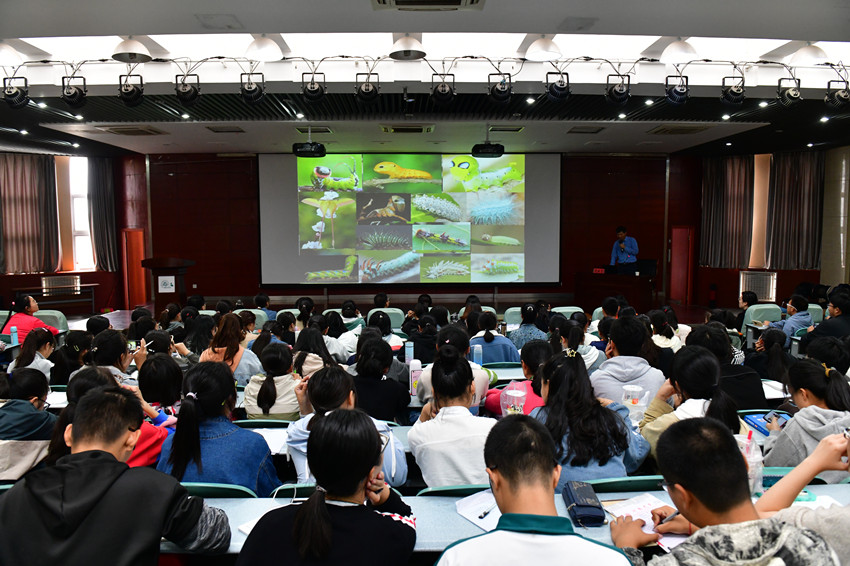 深入浅出,引人入胜。周树堂通过“蚕蛹化蝶”的过程,结合自身求学、科研经历,以个人体会和蝶类昆虫的成长过程为引子,就其不同阶段的成长发展及引发的思考,向与会学生全面系统地阐述了成长、发展、选择的深刻内涵,为全场学生送来了一场求学索识、科研探究路上的精神盛宴。