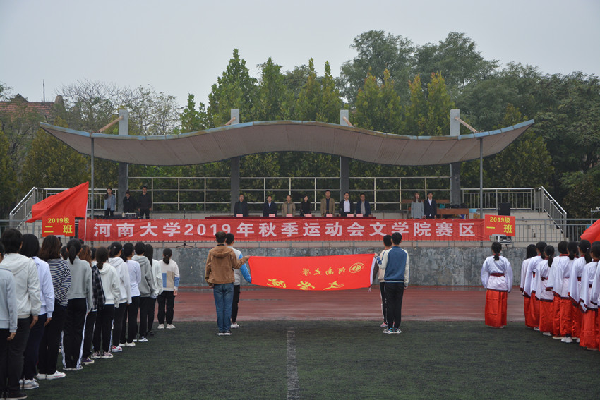 10月12日上午,河南大学2019年秋季运动会文学院赛区开幕式于明伦校区东操场举行。校体委、校团委、体育学院、文学院有关负责人出席开幕式,开幕式由文学院党委副书记高冬东主持。