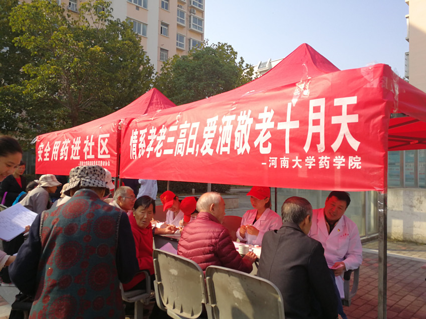 为发扬中华民族尊老敬老的传统美德,弘扬爱老助老的志愿精神。10月19日上午,药学院党委组织教工党员和青年志愿者协会在河大21号家属院开展“安全用药进社区”活动,旨在提高中老年人安全用药意识,普及“三高”知识。