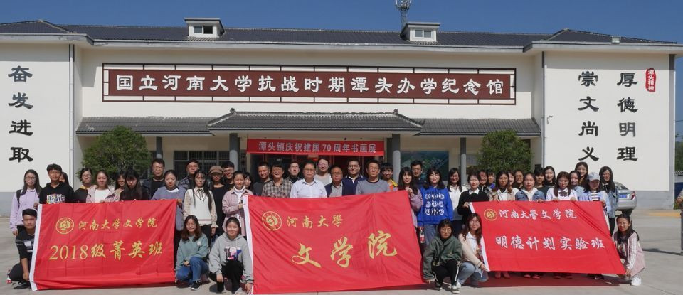 10月19日至20日,文学院2017级“明德计划实验班”与2018级“菁英班”学生在院党委副书记高冬东教授、副院长武新军教授、实验班班主任杨亮副教授、菁英班班主任许卫东副教授、院团委负责人卡哈尔等带领下赴潭头与嵩县开展了为期两天的“不忘初心、爱国爱校、重走烽火育才路”活动,近距离追忆和感受河南大学在抗战时期的艰辛时光与烽火岁月。