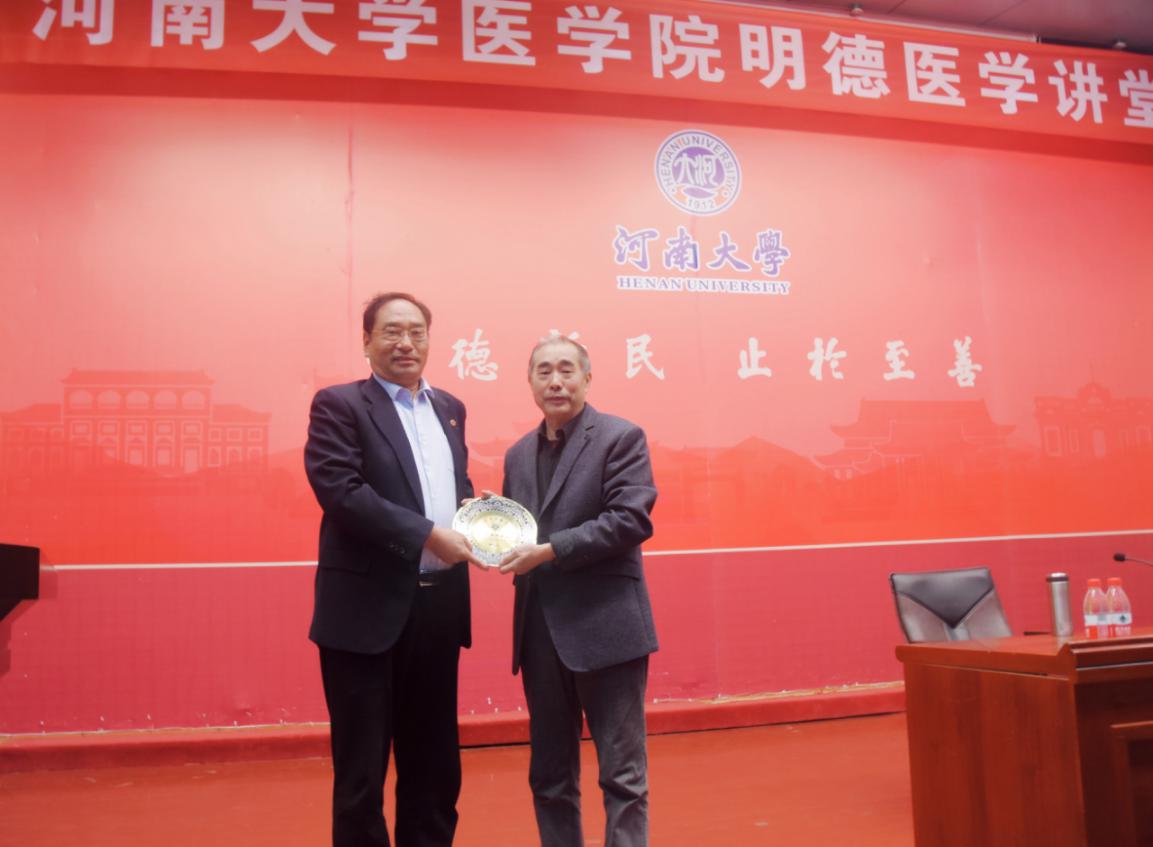 讲座结束后,校党委常委、副校长、医学院党工委书记孙君健为秦英君教授赠送了“明德医学讲堂”的特制铜盘。