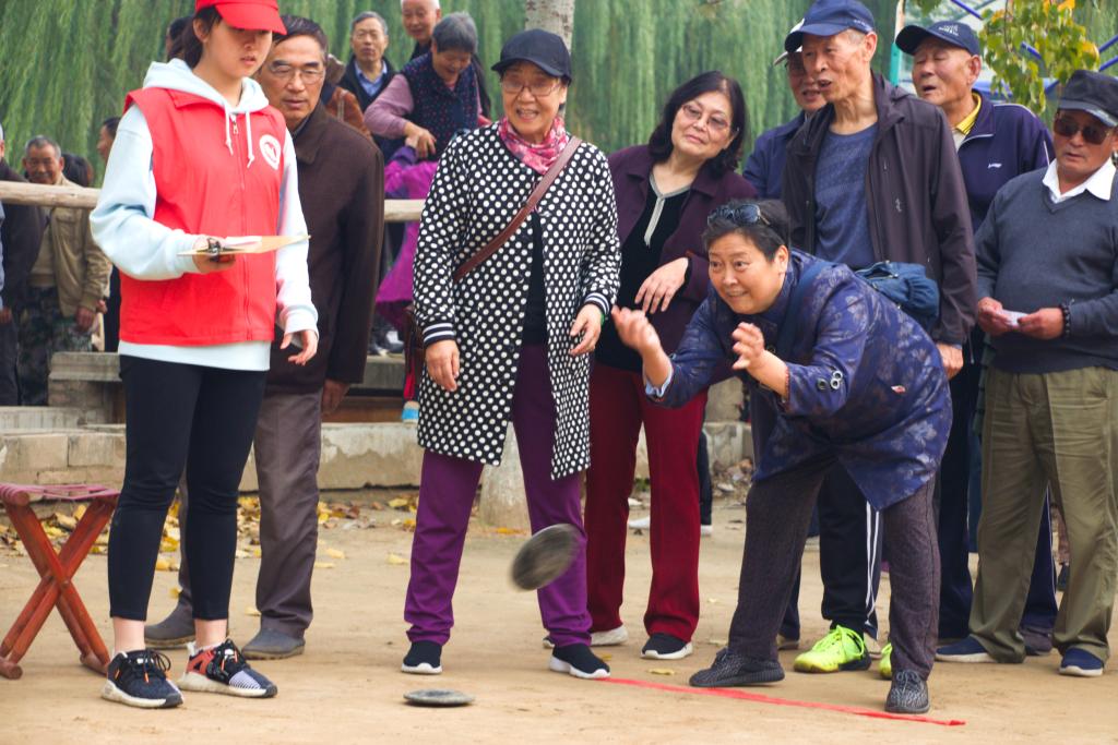 本次活动共设小篮球投篮、沙包投准、滚门球、滚铁饼和滚呼啦圈等五个项目,都是根据老年人身体条件与运动需求精心设计的。赛场上,老同志们精神饱满,劲头十足。在青年志愿者的协助下,现场安全有序。活动持续了近两个小时,在一片欢乐、祥和的氛围中圆满结束。