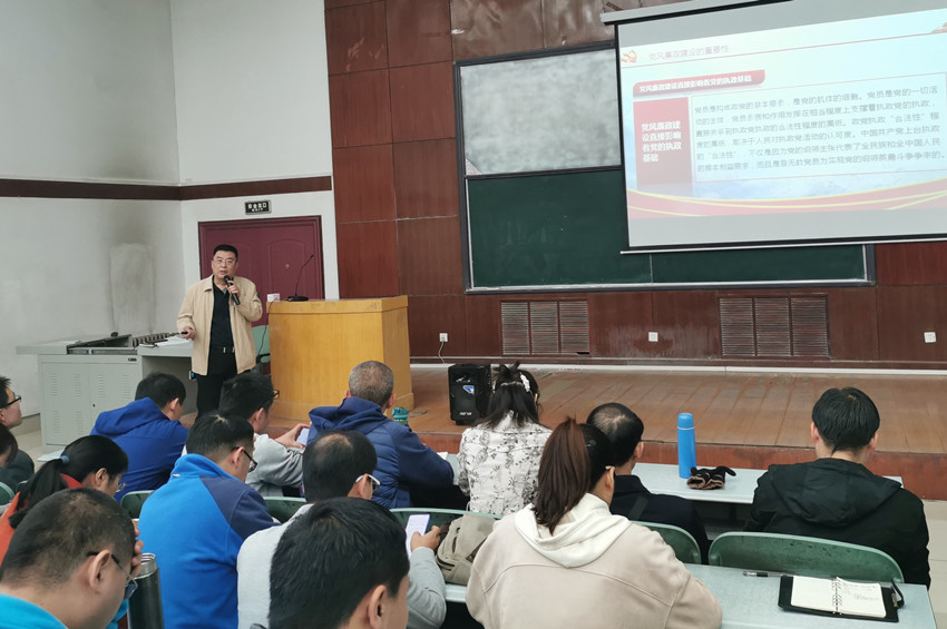 吕冰紧密围绕“全面从严治党,抓好党风廉政建设”的主题,分别从党风廉政建设的重要性,如何抓好党风廉政建设,反腐的重要措施与成果,全面从严治党,不忘初心四个方面进行阐述,深入分析中国共产党全面从严治党的成果与决心,他指出,做一名合格的共产党员,进一步坚定理想信念,巩固宗旨意识,加强道德修养。他结合自身在“不忘初心、牢记使命”主题教育中的学习收获,以及近期的真实案例和榜样人物的先进事迹,向在场师生进一步明确初心与使命的深刻含义,要求全体党员勿忘入党初心,牢记党的宗旨,时刻不忘记对党做出的庄严承诺。