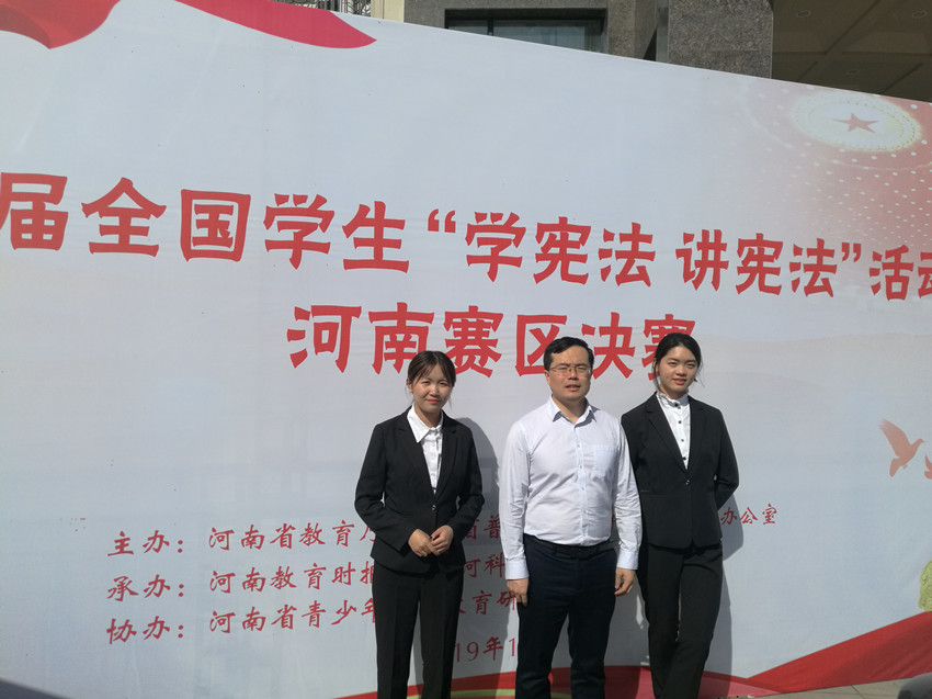 为贯彻落实习近平总书记关于宪法学习宣传教育的系列重要指示精神,按照中央全面依法治国委员会年度任务安排和省委省政府要求,10月26日至28日,第四届全国学生“学宪法,讲宪法”活动河南赛区决赛在郑州举行,我校法学院2018级本科生孙孟盈、王晨分别在高校演讲比赛和知识竞赛中获二等奖。