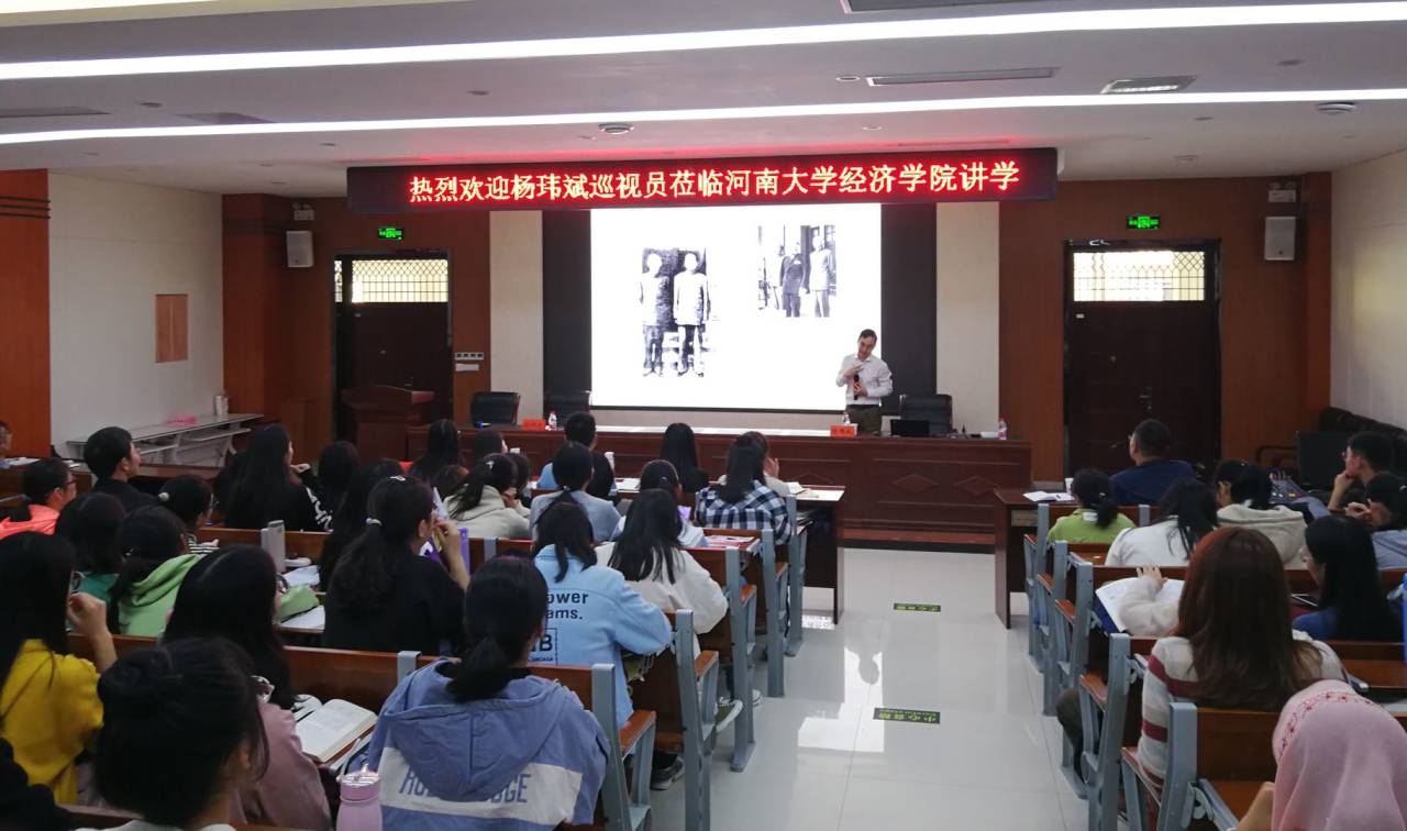 “敢问路在何方”“踏平坎坷成大道”“一路豪歌向天涯”,通俗易懂而又富含幽默的语言,儒雅而又不失风范的讲述,引起了现场听众的强烈共鸣,赢得阵阵掌声。诸多难点热点问题在杨玮斌看来都是“冰冻三尺非一日之寒”,都有着复杂的历史背景,特别是中美之间的贸易战背后的因素更加复杂,这就需要我们沉着、冷静、充满智慧的去应对。在应对的过程中,他要求同学们,要用历史唯物主义的眼光去看待问题、分析问题,要立足四个自信,讲好中国故事、讲好河南故事。他因此建议,作为青年大学生,一是要学好专业知识、夯实专业技能;二是多读书、多读历史书籍,并向学生推荐了多本优秀图书和读物;三是多实践、多到一些国际组织实践,不断提升综合素养尤其是政治判断力,前段时间河南大学举办了“河南省国际组织人才能力建设培训工作坊”,为同学们提供了良好的平台,加深了大家对国际组织的认识和理解,拓宽了大家的国际视野,值得肯定并希望学校多举办此类活动。作为经济学院的学子,他要求大家应时刻关注国家的重大方针政策,关注国家的重大战略部署,在当今世界百年未有之大变局中正确定位自己、科学规划自己。