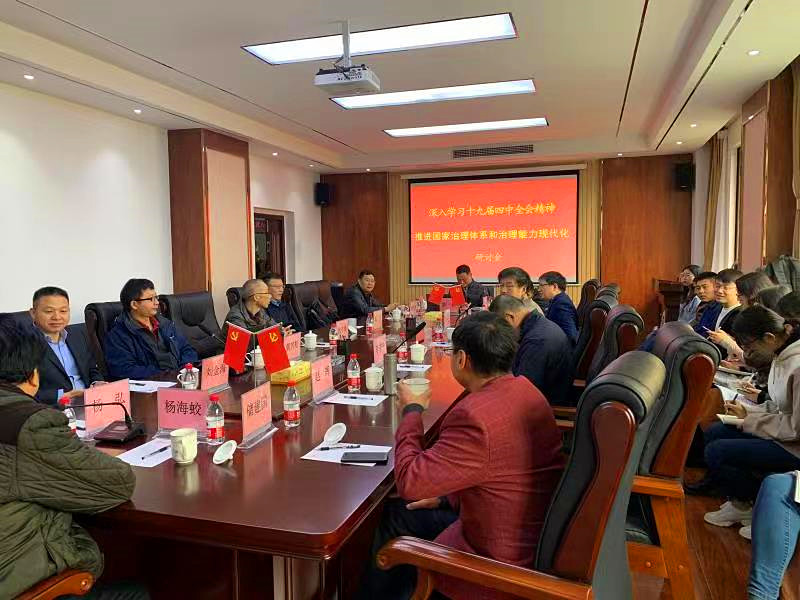 为深入学习贯彻党的十九届四中全会精神,激发师生们的研究热情,马克思主义学院于11月6日上午在三楼会议室召开了一场关于“深入学习十九届四中全会精神,推进国家治理体系和治理能力现代化”的研讨会。中国社会科学院政治学研究所副所长杨海蛟、南京师范大学公共管理学院院长赵晖、中国红色资源开发与教育研究中心主任李康平等来自全国各地高校的18名专家、学者应邀参加了此次研讨会。马克思主义学院教师代表、硕士、博士生代表也到场旁听。研讨会由副院长陈哲主持。