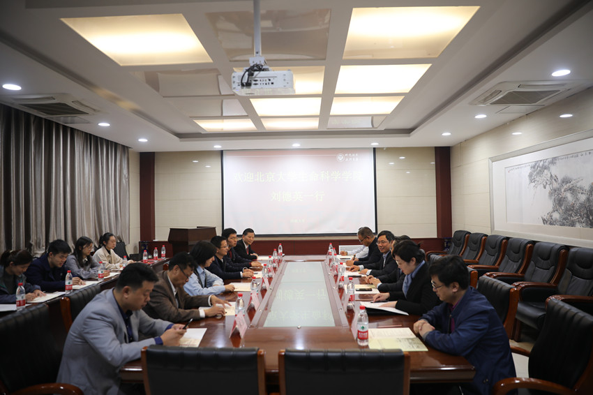 11月2日下午,北京大学生命科学学院党委书记刘德英、党委组织员刘天舒等一行12人到我校生命科学学院和棉花生物学国家重点实验室调研交流,双方在棉花生物学国家重点实验室301会议室召开座谈会。开封市科技局副局长刘伟,河南大学资产管理经营有限公司总经理王恒兵、副总经理邱永宽,中镜科仪集团总经理郭新勇,生命科学院党委书记赵东保、副书记张亚歌、副院长赵翔出席座谈会,会议由张亚歌主持。