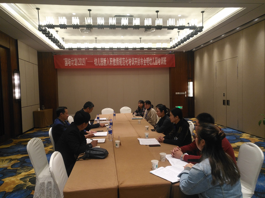 11月11日,在开封市金明幼儿园,园长张静从训前准备、培训方案、培训方式、师资团队、培训管理、后勤保障、培训效果、训后跟踪、综合评价、特色亮点、存在问题等,对今年承担的幼儿园新入职教师规范化培训作了详细汇报。