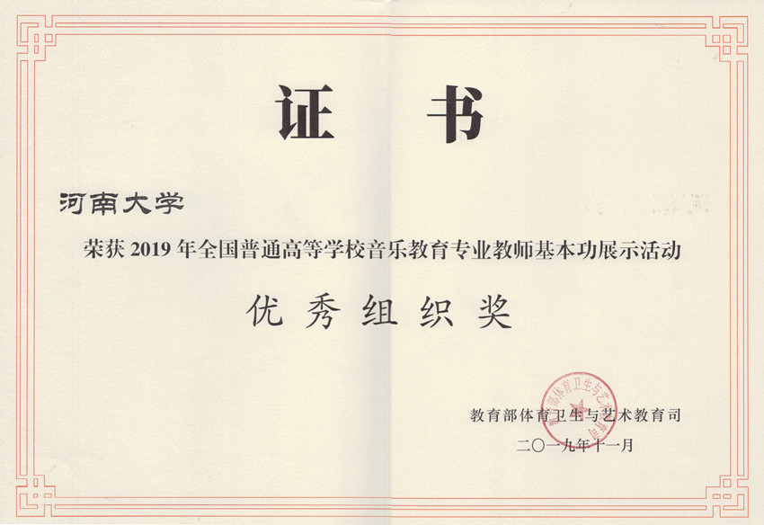 经过激烈角逐,我校代表队取得优异成绩,康长安荣获理论作曲组个人全能三等奖、教学展示单项奖;李严梅荣获教法组个人全能二等奖、教学展示单项奖;赵博荣获技能组专业展示(单簧管+乐队指挥)单项奖;河南大学荣获优秀组织奖。我校教师的扎实的职业素养、过硬的专业技能、鲜明的个人特色以及同力协契的集体荣誉感获得了大赛评委和其他兄弟院校的认可与称赞。此次比赛结果也检验出我校音乐师资实力在全国同类高校中处于较高水准。