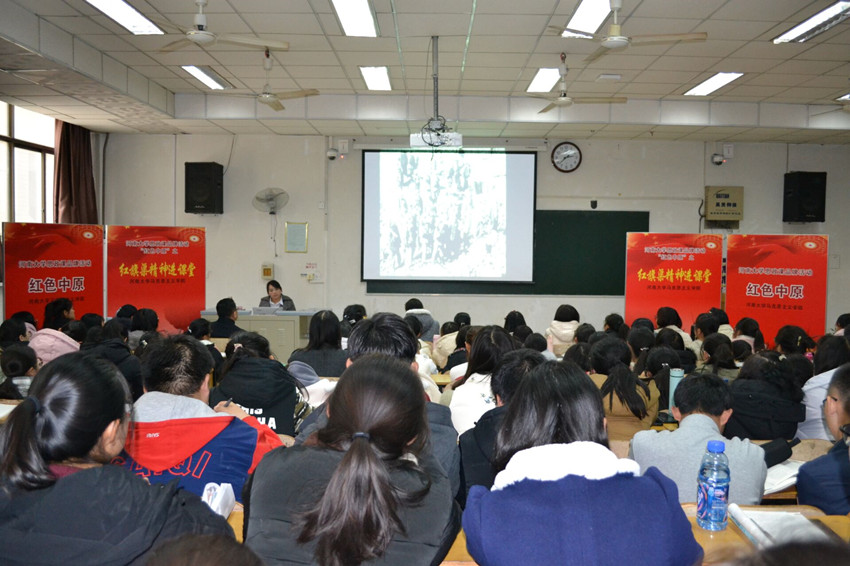 11月26日下午,我校思政课品牌活动“红色中原”之“红旗渠精神”进课堂活动于综合楼117教室开讲。红旗渠干部学院教研部老师张利华应邀担任主讲嘉宾,马克思主义学院副院长张枫林主持活动。