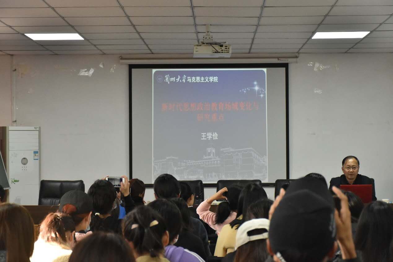 11月4日上午,兰州大学马克思主义学院二级教授、博士生导师,教育部高校思想政治工作创新发展中心(兰州大学)主任、教育部高等学校马克思主义理论学科教学指导委员会委员、甘肃省社科联副主席、兰州大学新时代思想政治教育工作研究院执行院长王学俭教授受邀于马克思主义学院五楼会议室作了主题为“新时代思想政治教育场域变化与研究重点”的学术讲座。讲座由马克思主义学院执行院长张向东主持,学院教师与研究生参加讲座。