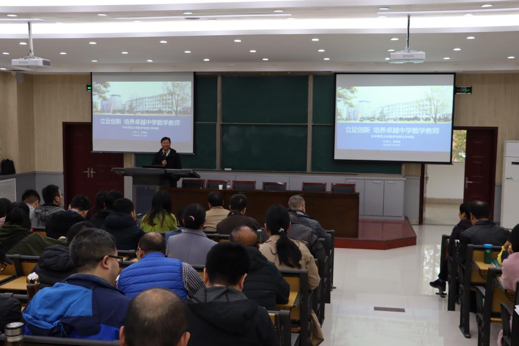 11月5日下午,应数学与统计学院邀请,教育部师范专业认证专家组成员、华中师范大学数学与统计学院副院长郑高峰教授在学院二楼第一阶梯教室做《数学与应用数学师范专业第三级认证工作交流》的专题报告。学院领导班子成员,数学系、应用数学系和数学教育系全体教师,学院教务办全体成员,各年级辅导员老师、师范专业本科主要学生干部及教育硕士等100余人参加了报告会。