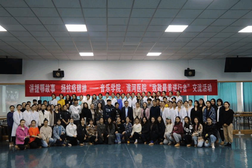 韩梅代表学院对淮河医院援鄂医疗队成员的到来表示热烈欢迎,并对他们在疫情防控最严峻的时刻能够挺身而出,无畏逆行并圆满完成任务的精神表示敬佩。她希望学院师生通过与“最美逆行者”面对面交流,能深入学习领会伟大抗疫精神,创作、呈现出更多、更好弘扬我国伟大抗疫精神的艺术作品。